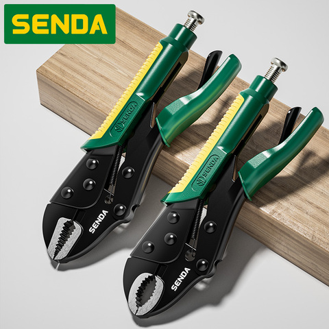 Alicates de bloqueo con punta redonda ennegrecida y mango de plástico